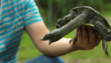 坚持早晚巡塘,检查防逃设施,观察水质变化及甲鱼的吃食情况,发现问题及时处理。